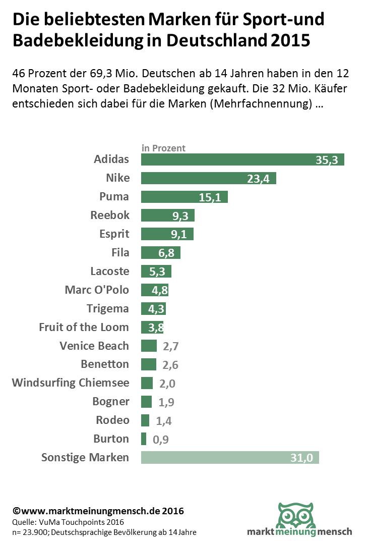 Die beliebtesten Marken für Sport- und Badebekleidung in Deutschland 2015