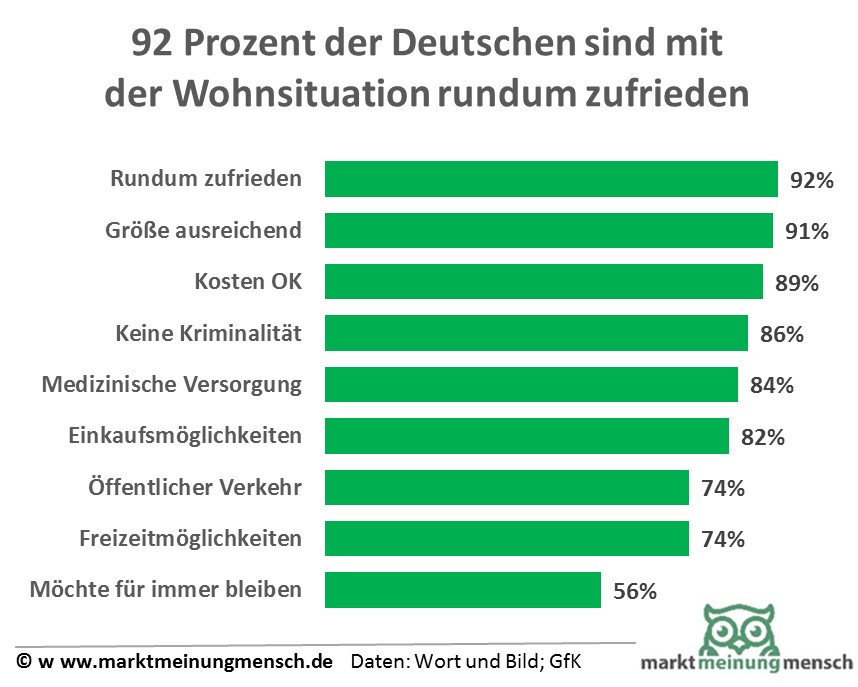 Umfrage: Zufriedenheit der Deutschen mit ihrer Wohnsituation