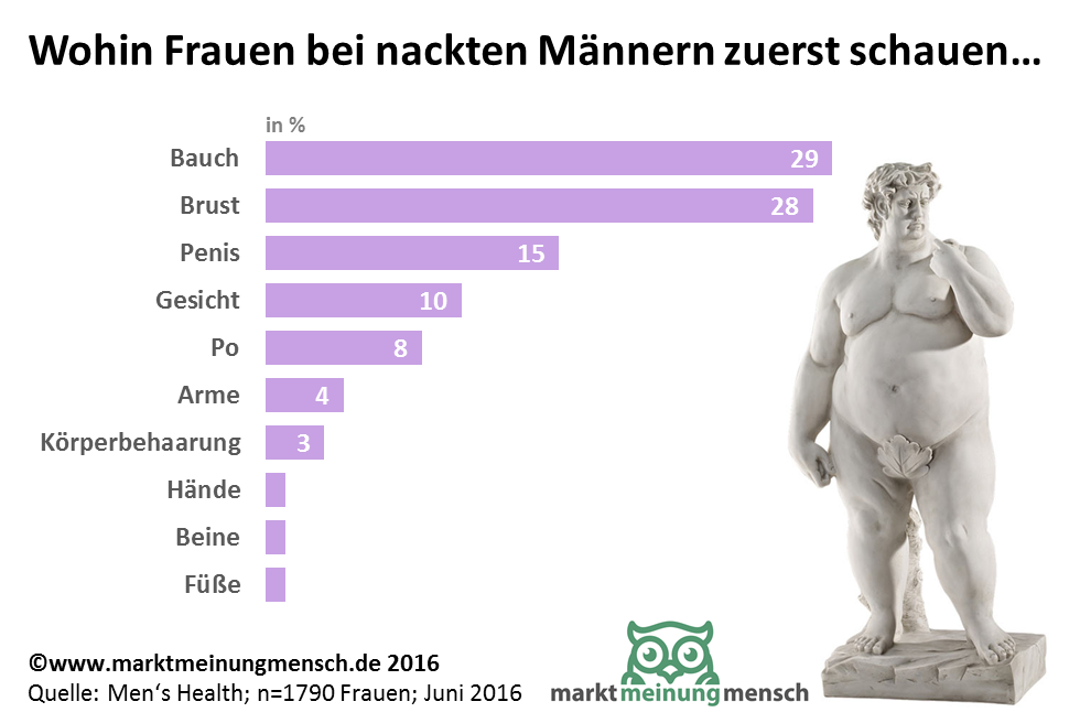 Hände und Augen eines Mannes werden total überbewertet. Die meisten Frauen schauen bei einem ausgezogenen Mann zuerst auf seinen Bauch. Das hat eine Online-Umfrage des Männer-Lifestyle-Magazins Men's Health unter 1790 Frauen herausgefunden.