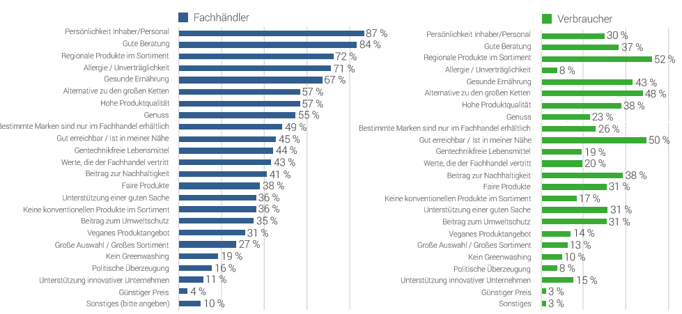 Fachhändler sehen ihre Persönlichkeit und Beratung vorne Verbraucher legen eher Wert auf das regionale Produktsortiment und gute Erreichbarkeit.