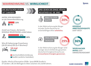 Die Ergebnisse stammen aus der Ipsos MORI »Perils of Perception 2018«-Studie, die über das Ipsos Online Panel System durchgeführt wurde. Die Befragung wurde vom 28. September bis zum 16. Oktober 2018 unter 28.115 Personen im Alter zwischen 16 und 64 Jahren in insgesamt 37 Ländern durchgeführt: Argentinien, Australien, Belgien, Brasilien, Chile, China, Dänemark, Deutschland, Frankreich, Großbritannien, Hongkong, Indien, Italien, Japan, Kanada, Kolumbien, Malaysia, Mexiko, Montenegro, Neuseeland, Niederlande, Peru, Polen, Rumänien, Russland, Saudi-Arabien, Schweden, Schweiz, Serbien, Singapur, Spanien, Südafrika, Südkorea, Thailand, Türkei, Ungarn und USA. In Montenegro und Serbien wurden zusätzlich zur Online-Befragung auch Face-to-Face-Interviews durchgeführt.