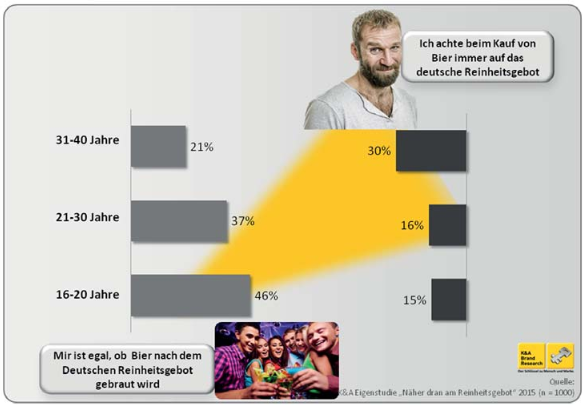 Im Rahmen der K&A Food-Trend-Studie 2016 wurde die Relevanz des Reinheitsgebotes von 1516 untersucht. Junge und Erwachsene der Generationen Y und Z und deren Einstellungen zum Reinheitsgebot wurden besonders unter die Lupe genommen.