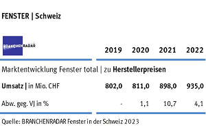 Marktentwicklung Fenster in der Schweiz 2019 bis 2022