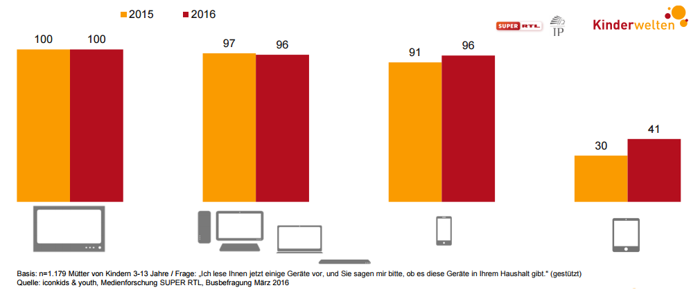 - Die Jüngsten haben die beste Tablet-Ausstattung. Über die Hälfte der Kleinkinder hat ein Gerät im Haushalt.