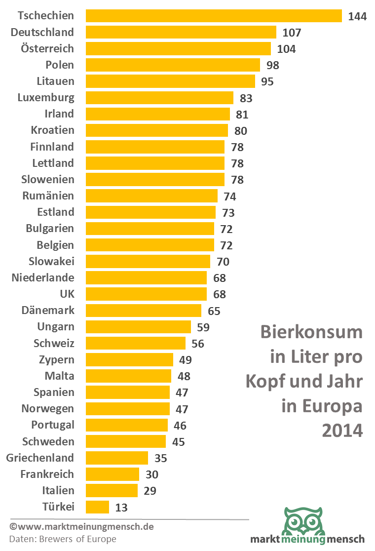 Der durchschnittliche Bierkonsum in Europa