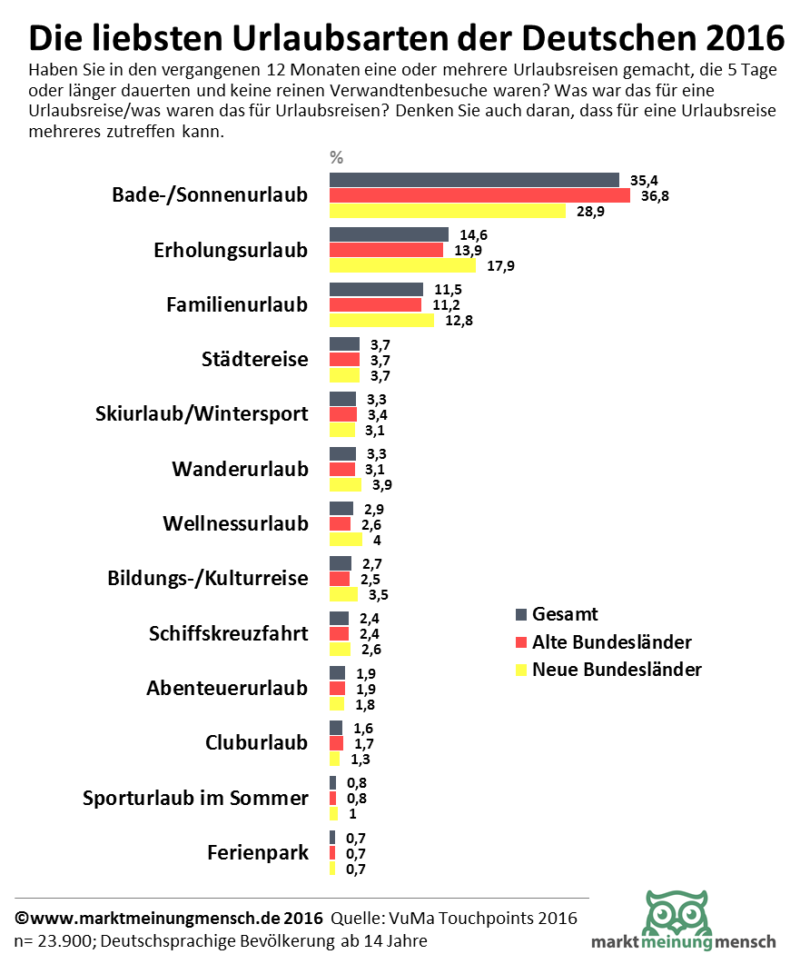 Die beliebsten Urlaubsarten der Deutschen 2016