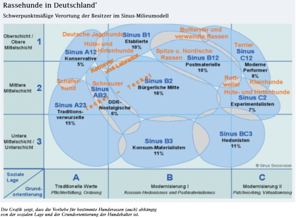 Dempgraphfie • Grundhaltung • Haustiere • Hunde • Hunderassen • Lebenseinstellung • Rassehunde • Segmente • Sinus Milieus • Werte • Zielgruppen |