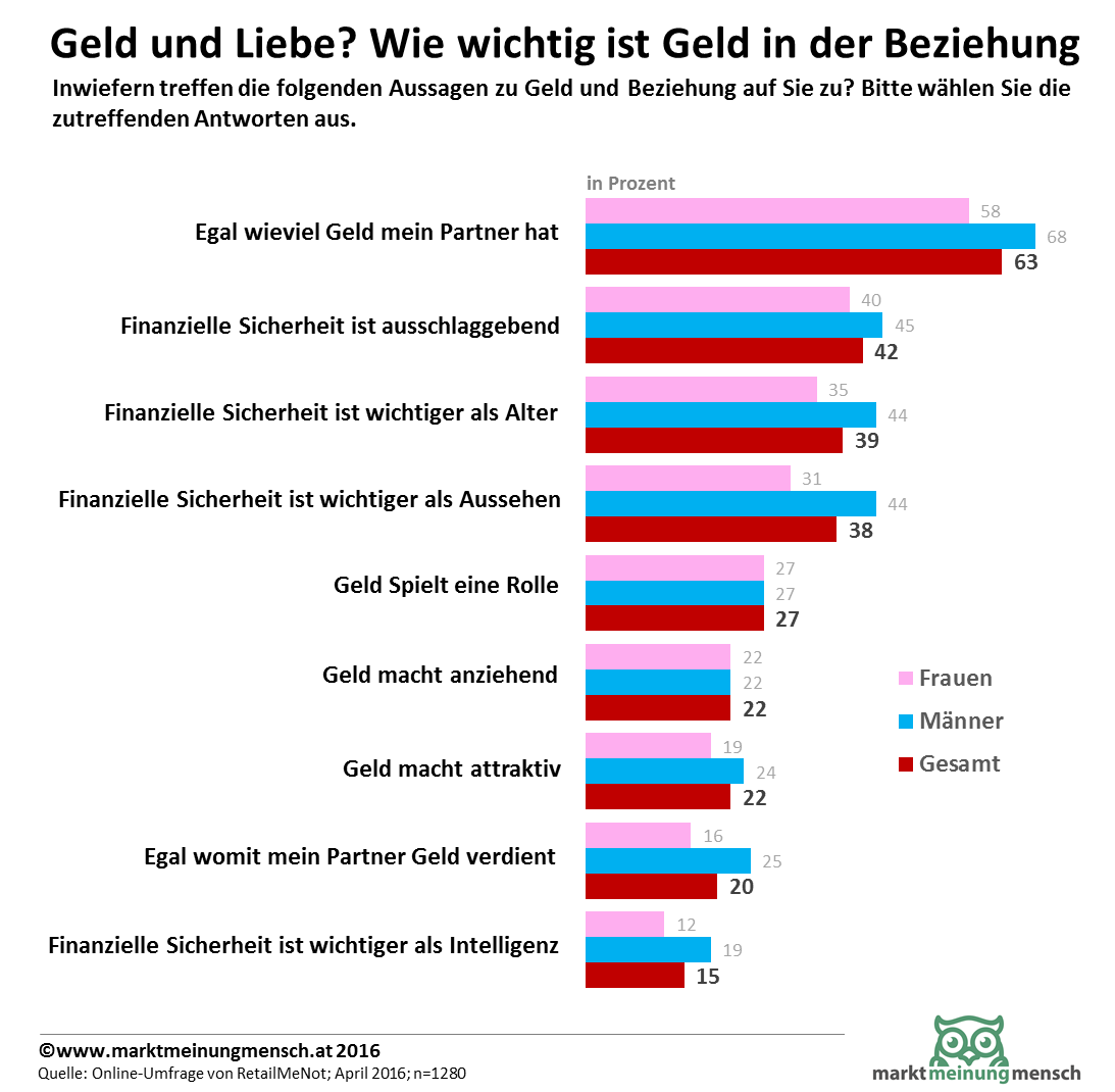 Die Infografik zeigt welchen Einfluss Geld auf die Beziehung und die Partnerwahl hat. Der Mehrheit der Deutschen ist egal, wieviel Geld der Partner hat. Dennoch sind finanzielle Aspekte anziehend und sexy und oft wichtiger als Aussehen.