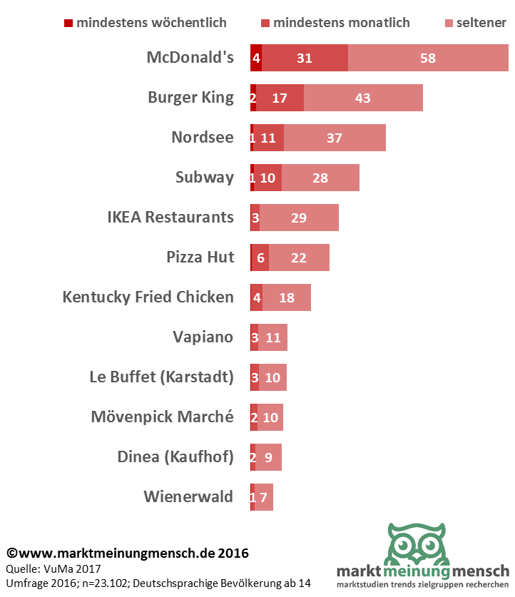 Die beliebtesten Fast Food Restaurants in Deutschland 2016