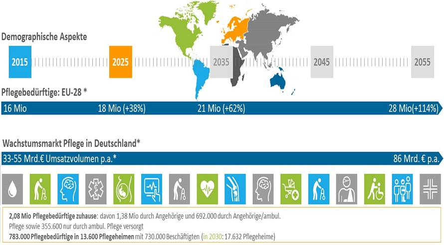 Nimmt man die demographische Entwicklung in Deutschland oder anderen Ländern Europas zum Anlass, so werden wir nicht nur einen Anstieg an betreuungsbedürftigen Menschen im Bereich der Pflege erleben, sondern parallel dazu einen steigenden Bedarf an Produkten und Dienstleistungen, welche diese Stakeholder zukünftig in Anspruch nehmen, sei es in der häuslichen oder stationären Pflege. Im Rahmen dieser Alltagserfahrungen mit Produkten und Services in der Pflege werden neben den Betroffenen selbst auch professionell Pflegende, pflegende Angehörige und Key Opinion Leader aus Pflege-Einrichtungen gehört werden müssen. Aber auch Industrie-Unternehmen tragen Verantwortung in diesem Markt.